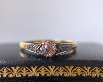 0.25 Cts Antique solitaire diamond ring original Victorian diamond engagement ring 14k, Round Diamond Solitaire Ring Yellow Gold