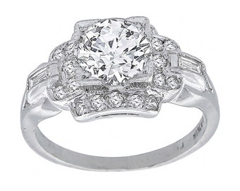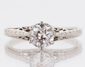 Antique Engagement Ring - Antique Platinum Diamond Solitaire Engagement Ring