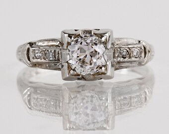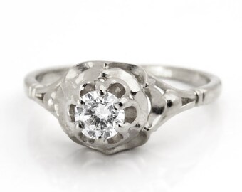 Antique Engagement Ring - Antique Diamond Engagement Ring 1930's in 14k White Gold