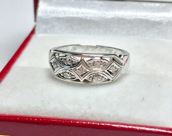 ANTIQUE DIAMOND RING l 14KT White Gold Diamond Ring l Stackable Ring