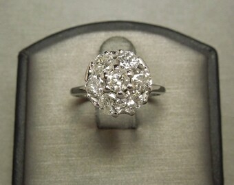 Vintage Estate C1960 Platinum 1.10TCW Round Diamond Cluster 6 carat Solitaire Illusion Engagement Ring Sz 7.5