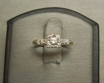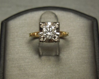 Antique Estate C1940 18K 14K Gold 0.63ct VS2 Round Square Diamond Solitaire Engagement Ring