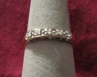 Vintage or Antique 5 Diamond Wedding Ring Band 14kt yellow gold with white gold top section