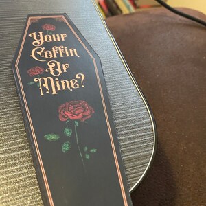 Read the full title Pink Rose Coffin Bookmark, Gothic Bookmark, Rose Bookmark, Springoween, Witchy Bookmark, Halloween