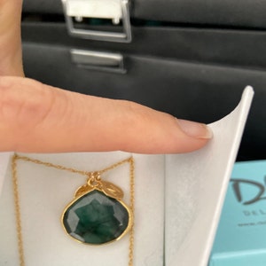 Gorgeous piece! I love it. From the sweet beautifully branded packaging, the leaves and customr letters on it, the bevel cuts on it for added sparkle, the delicate chain, everything is just perfect! So happy with it and I look forward to wearing it a lot!