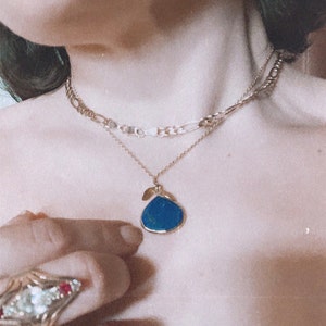 This stunning necklace features a gold or silver framed gemstone drop pendant hanging from a delicate 14k Gold Filled or Sterling Silver chain!