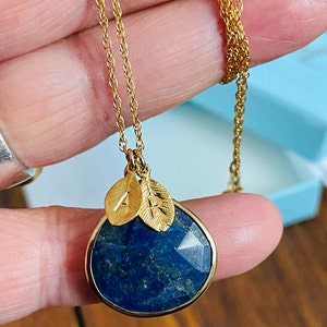Lapis Lazuli Necklace, Custom Stamped Initial, Personalized Gift, September Birthstone Gift, Boho Jewelry, New Mom Present, Keepsake Jewelry