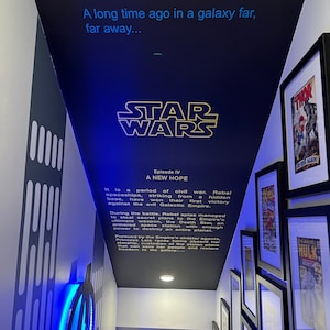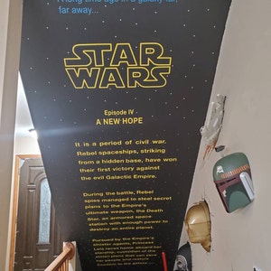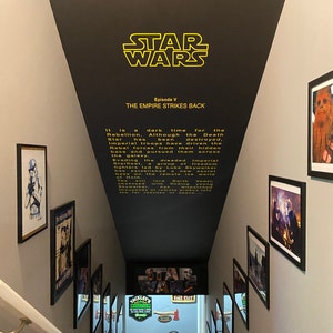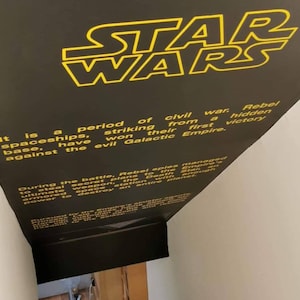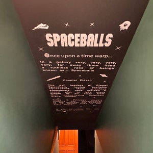 On a whim, we requested this item ... just to see if it was possible. We were completely surprised when they agreed to make our custom Spaceballs Opening Crawl. CityStic worked with us along the way, and made exactly what we wanted. After a few weeks, our decals arrived and had easy instructions on how to apply it to the wall. Absolutely Love our new stairwell ceiling!