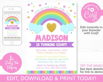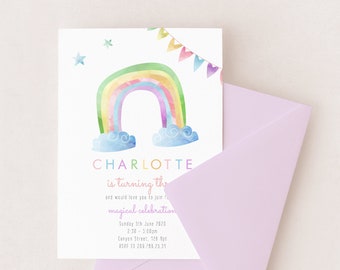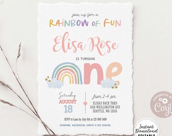 Printable Rainbow Birthday Invitation | Rainbow party invite | simple modern | boy girl | first birthday | Digital download | 5x7 Invite