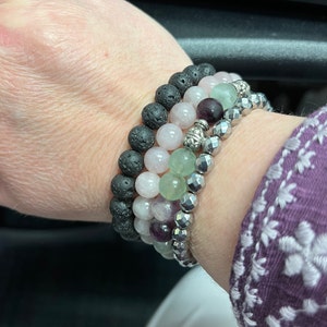 Set of 3 Bracelets, Self Love Bracelets, Healing Crystal Bracelet, Onyx Bracelet, Rose Quartz Bracelet, Rhodonite Bracelet, Healing Crystals