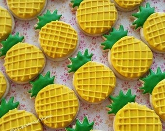 Plants and Edibles Baked Goods Cookies Pineapple Sugar Cookie Royal Icing Hawaii Hawaiian Luau Party Favor Gift Sweet Island Tiki Paradise Sweets