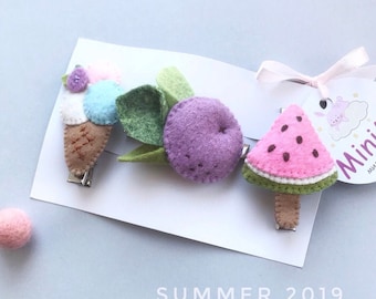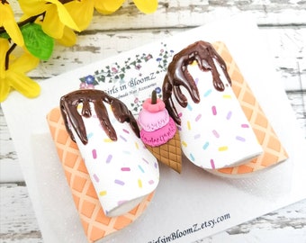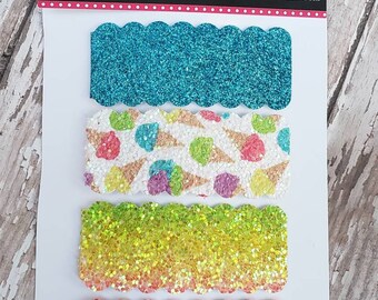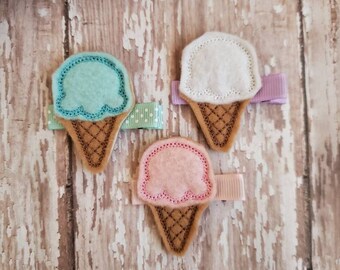 Ice Cream Cone Clip and Headband Set for Summer Baby Girls- Aqua, Pink, or Green