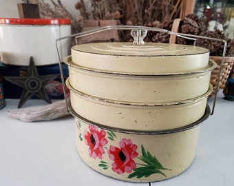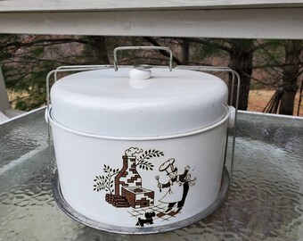 Vintage J.L. Clark Metal Triple Decker Food Cake Pie Carrier Saver Retro Round