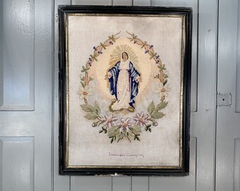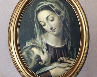 Vintage Paint By Number Painting Virgin Mary Wood Framed Religious