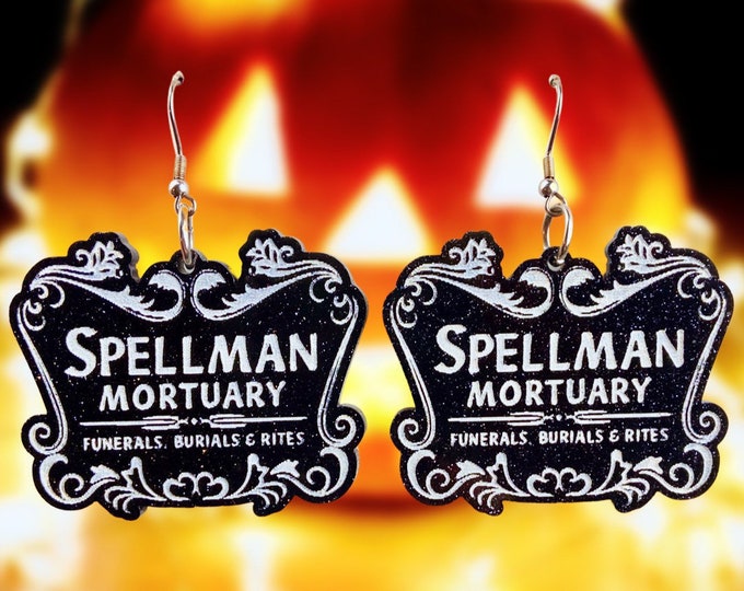 Spellman Mortuary Earrings, Chilling Adventures of Sabrina, Witchy, Glitter, Handmade, Acrylic, Statement Earrings, Laser Cut Earrings