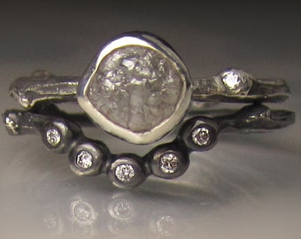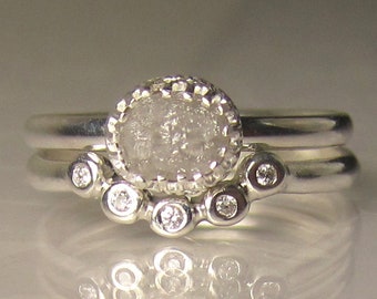 Raw Diamond Wedding Set, Raw Diamond Engagement Ring, Rough Diamond Ring