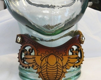 - Materials: leather, brass, wireless keyboard, metal, rivet, buckle, chain, antique, key, found objects, wood