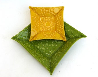 simple as that .... olives and pits .... fun to eat, but you never know where to put that pit! well, problem solved, a fun and very functional depository for those pits. the olive vessel stands just over 3 inches tall and about 3 inches across, the pit pot ... smaller, so ... why not, great gift for those of us that have just about everything! p.s. the inside color is a brilliant orange!
