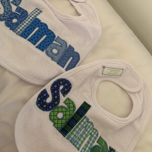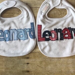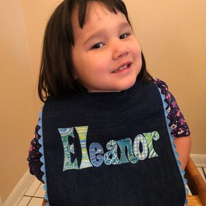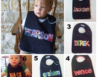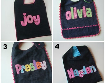 NOTICE: Please see my shop announcement before ordering to check on my current shipping time. Personalized Bib appliqued in animal prints using cotton fabrics by Tried and True Designs on Etsy.