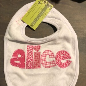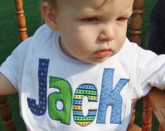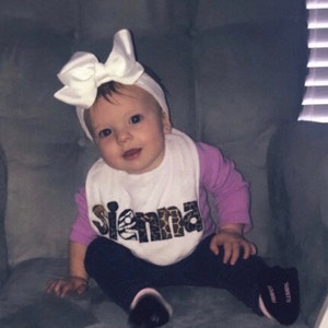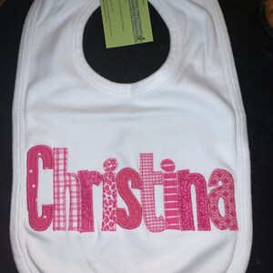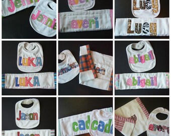 Personalized Bib Appliqued in animal prints for baby by Tried and True Designs on Etsy
