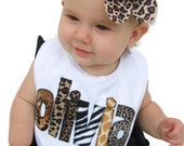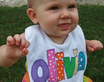 I've used the "Mr. Bubble" font on this bib for "Olivia". Animal prints and placement will vary with each bib.