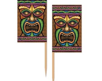 Home & Living Food & Drink Baked Goods Cupcakes Tiki Idol Mask cake tiki cupcake topper Luau cupcake fondant cupcake top edible cupcake top Summer cupcake top Hawaiian cupcake top Beach cupcake Luau party Beach party Summer party Hawaiian party cupcake cake topper