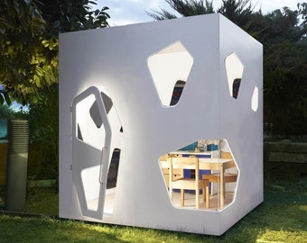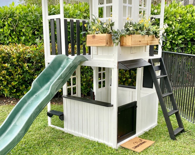 Farmhouse Style Outdoor Playhouse - Two Story with Open Slide