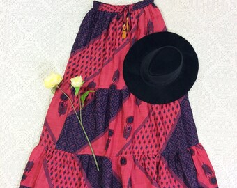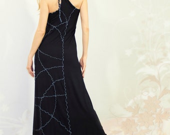Boho long maxi skirt, multiway one shoulder jersey dress with freehand serging, brown or pick your color - Wilma