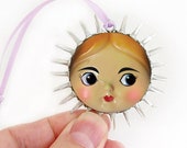 Doll Face Tree Ornament, Mixed Media Holiday Keepsake, Sun Godess, Christmas Swap, Holiday, Limited Edition, Kindness Gift, puckered lips