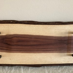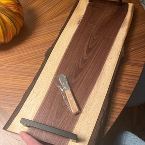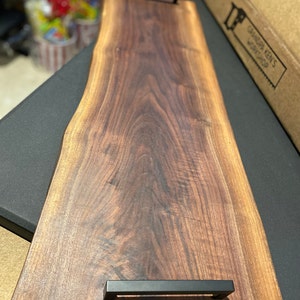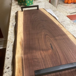 5 out of 5 starsThe charcuterie board is beyond stunning. It actually took my breath away when I saw it! It is a million times better in person than online. I purchased the 24" board...the size is substantial but not too big to fill. The black iron handles are sturdy and complement the wood so well. The black walnut is absolutely beautiful, solid, and heavy. I purchased three pinch bowls from Drowsy Wolf Studio, a walnut cheese knife set from Campcosie, and wood spoons for the pinch bowls from EssentiallybyKwens. They are a perfect for styling the charcuterie board. Shipping was fast, and when I emailed Ken, he promptly responded. I am so pleased with the quality of this board, and I can't recommend it enough!
