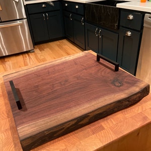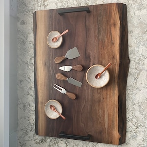 Charcuterie Board Live Edge Wood, Black Walnut Charcuterie Board Personalized with Handles, Wedding, Anniversary, Housewarming Gift