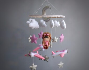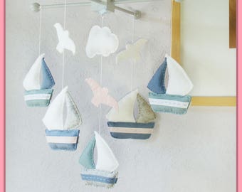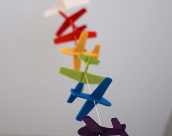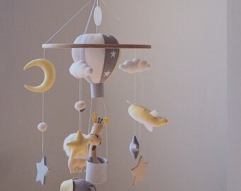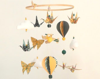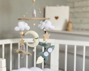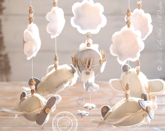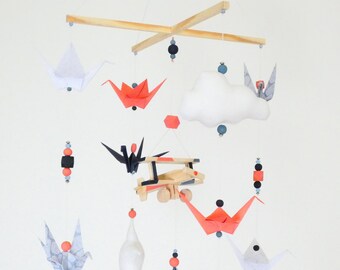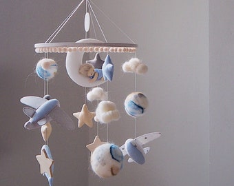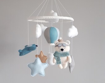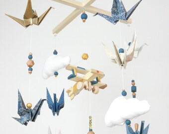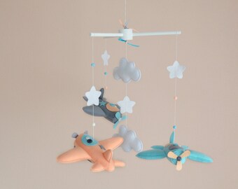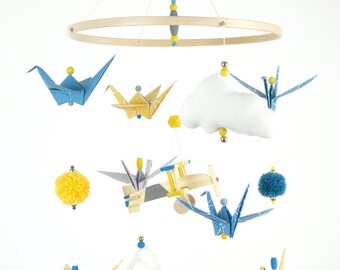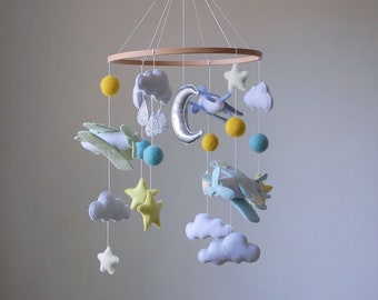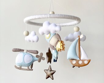 Baby Boy Mobile, Boy Mobile, Airplane, Blimp, Jumbo Jet, Rocket, Helicopter Fly In The Sky, Denim Blue Gray White Ivory