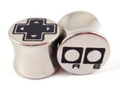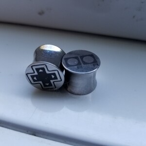 Old-School Gamer Double Flared Plugs - Surgical Steel - 2g 0g 00g 7/16" (11 mm) 1/2" (13mm) 9/16" (14mm) 5/8" (16mm) - Metal Gauges