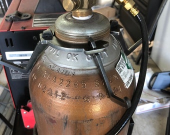 • May include: A digital rendering of a workshop setup featuring a large, olive-green cylindrical object and a smaller, yellow cylindrical object. Both are supported by blue and teal colored brackets on a purple perforated surface.