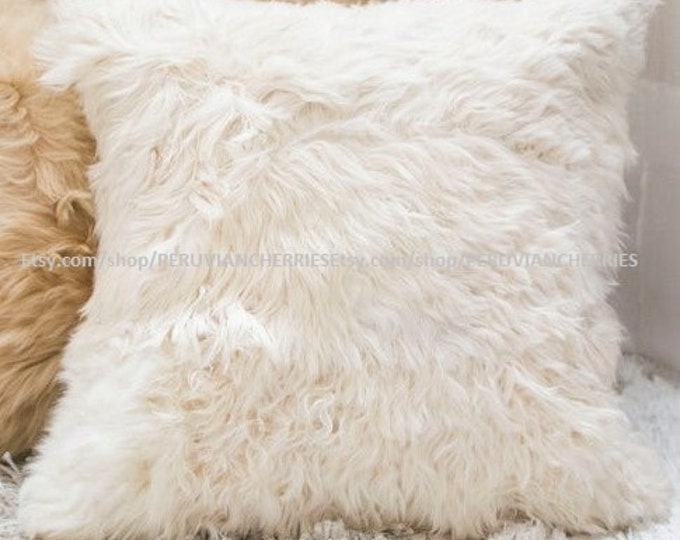 White Alpaca pillow, Alpaca fur , Baby Alpaca Fur Cushion Covers, pillow cover of one side in differents sizes.