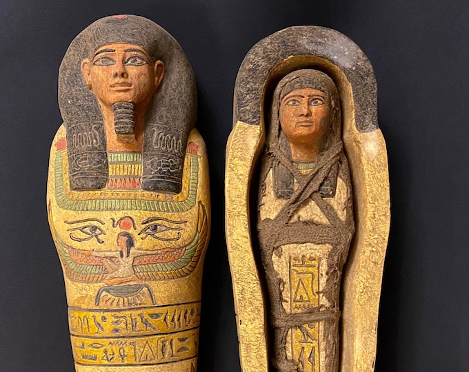 Ogromny, unikalny egipski sarkofag z zmumifikowaną Ushabti (owinięta mumia SHABTI) ręcznie wykonany w Egipcie