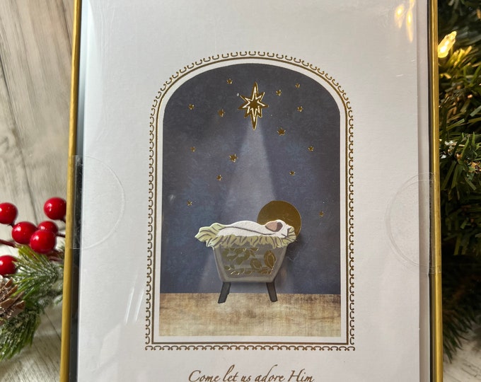 Baby Jesus Christus Heilige Nacht Gold Geprägte Boxkarten 10 Count