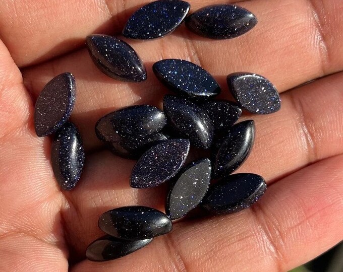 2 piezas de piedra arenisca azul con forma de marquesa, piedra preciosa de cabujón con parte posterior plana, piedra preciosa de arenisca azul de alta calidad para la fabricación de joyas, todos los tamaños Avl