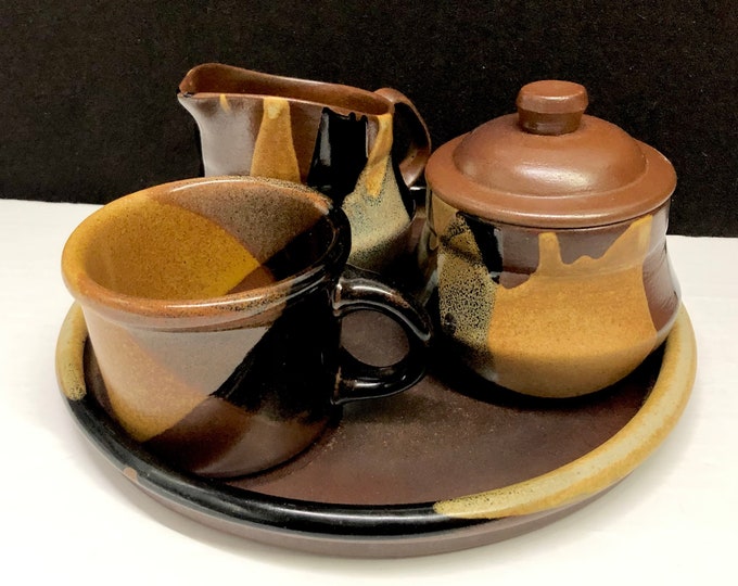 Potterycraft USA Cup, Sugar, Creamer and Tray Mid Century Modern Robert Maxwell