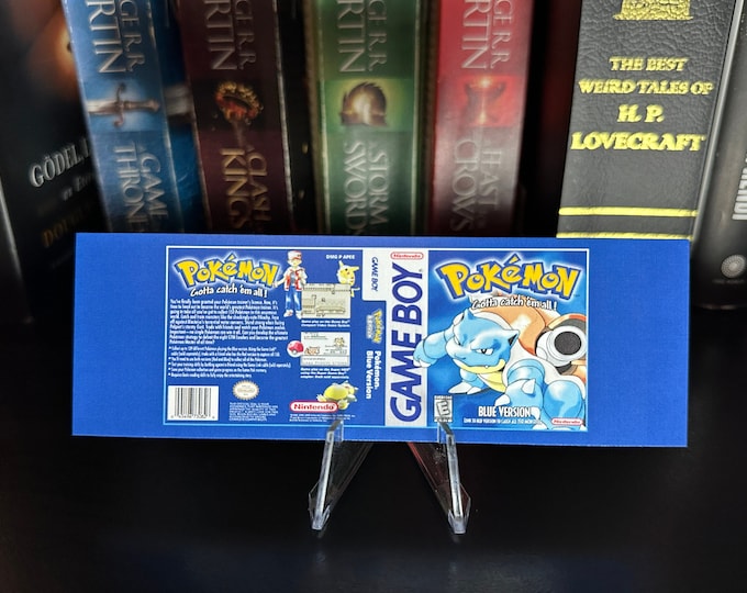 Pokemon Blue Bookmark - Classic Game Covers English / Japanese - High Quality Bookmark - Double Sided