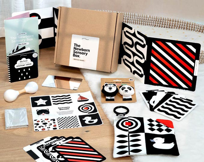Kit de juego sensorial para recién nacidos (0-6 meses): el mejor regalo original para bebés recién nacidos, caja de regalo para recién nacidos, regalo para baby shower, juguetes de alto contraste.