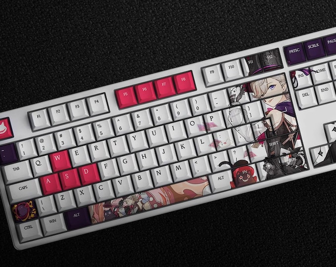 Juego de teclas Genshin Impact de Lyney, 144 teclas PBT para teclado mecánico, perfil Cherry, regalo personalizado de Lyney, diseño ISO y ANSI, teclado personalizado