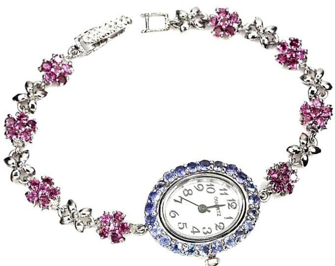 An exquisite silver watch with natural stones for a woman "Female heyday"