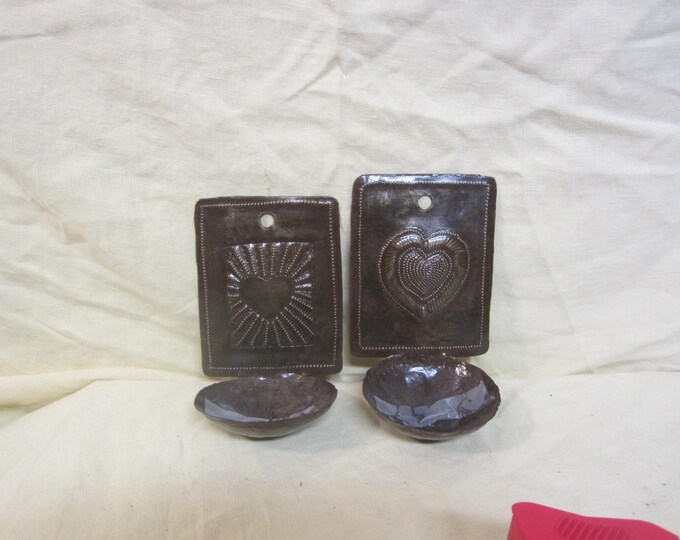 Vtg 2 Metal Wall Candle Holders/Sconces, Punched Heart Design