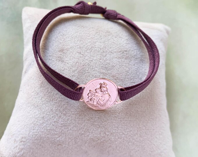 Bracelet scapulaire Notre-Dame du Mont/ or rose/ cordon extensible/ CARMEN