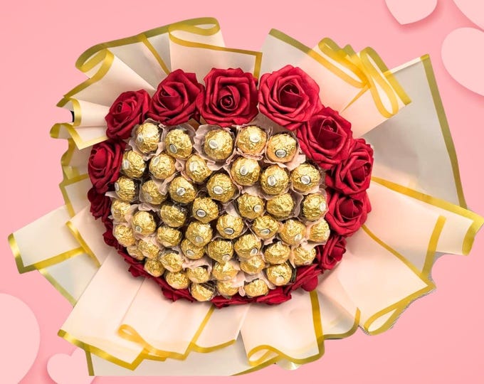 Geburtstagsstrauß Geschenk. Ferrero Schokoladenstrauß mit Blumen, Ostergeschenk, Geburtstagsgeschenk, Ostergeschenk, Geschenk für Sie, Dankeschön, Eid Geschenk