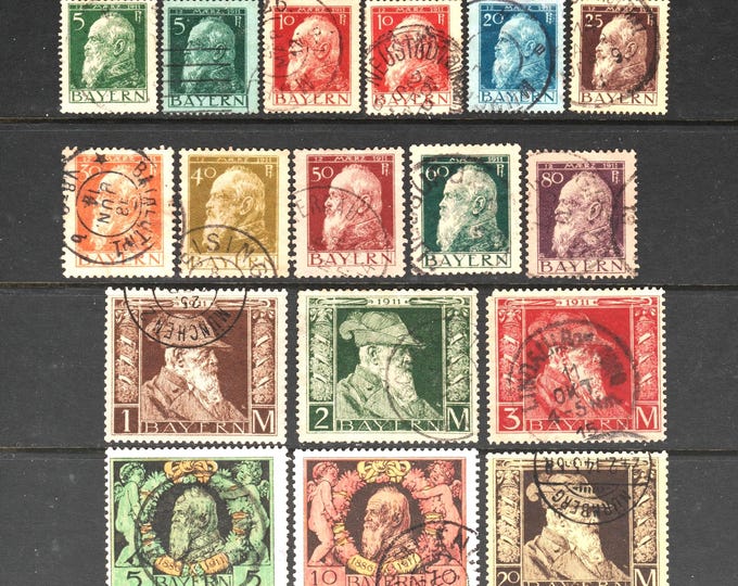 Beieren (Duitsland) jaren 1920, koning Ludwig II, set gebruikte postzegels. (31)