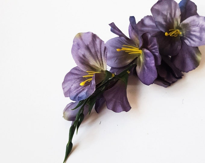 6 bouquets de fleurs en perles vintage faits main, tige en fil de fer, décoration florale violette et bronze