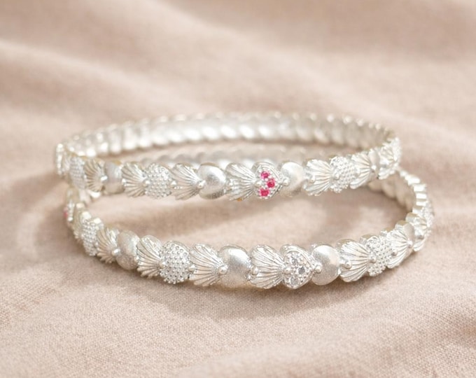 Sterling Silver Bangle Set: Sheep Design, Stackable Ruby Bracelet