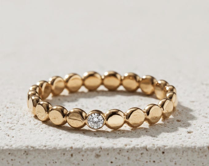 14K Solid Gold Beaded Moissanite Ring: Minimalist Stacking Jewelry